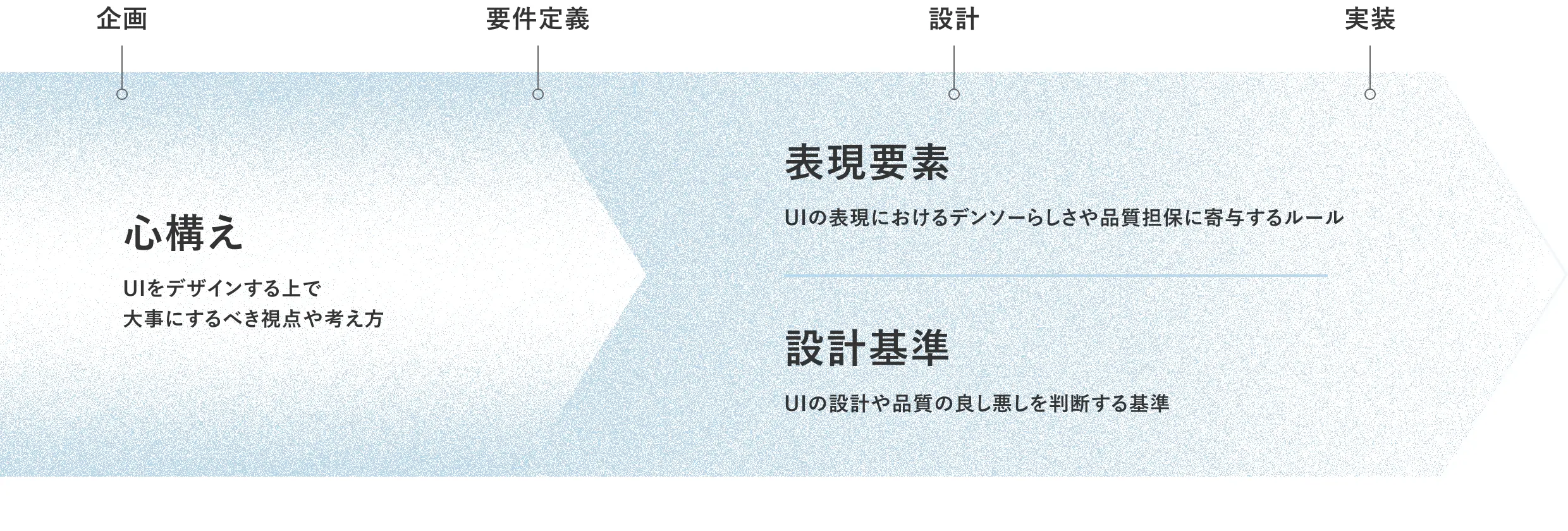 UIデザインに取り組む際のフェーズに合わせ、適用可能な指針やツールをまとめました。
