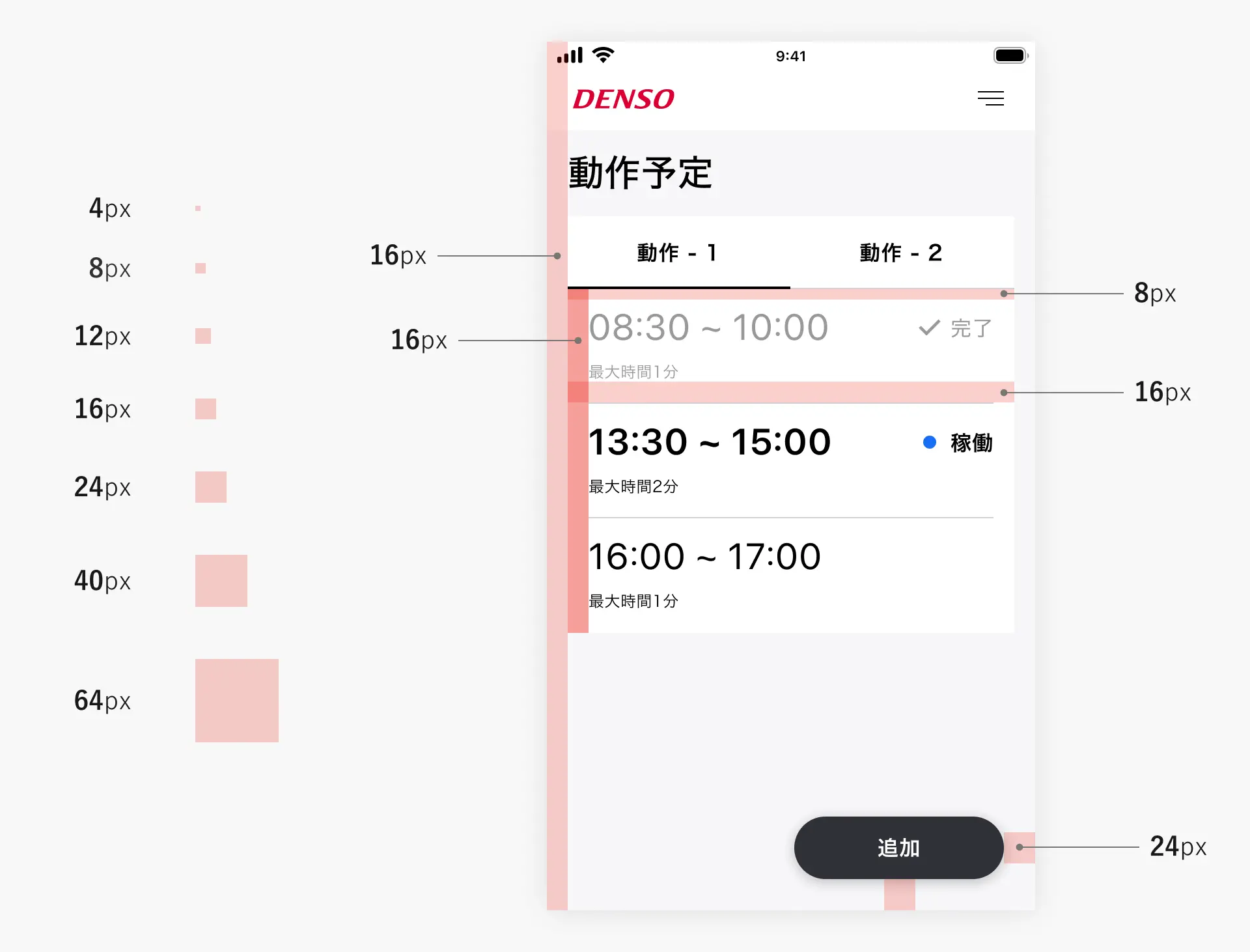 8の倍数のサイズを用いて余白を確保してください。(最小・中間が必要な場合は4, 12pxを使用)